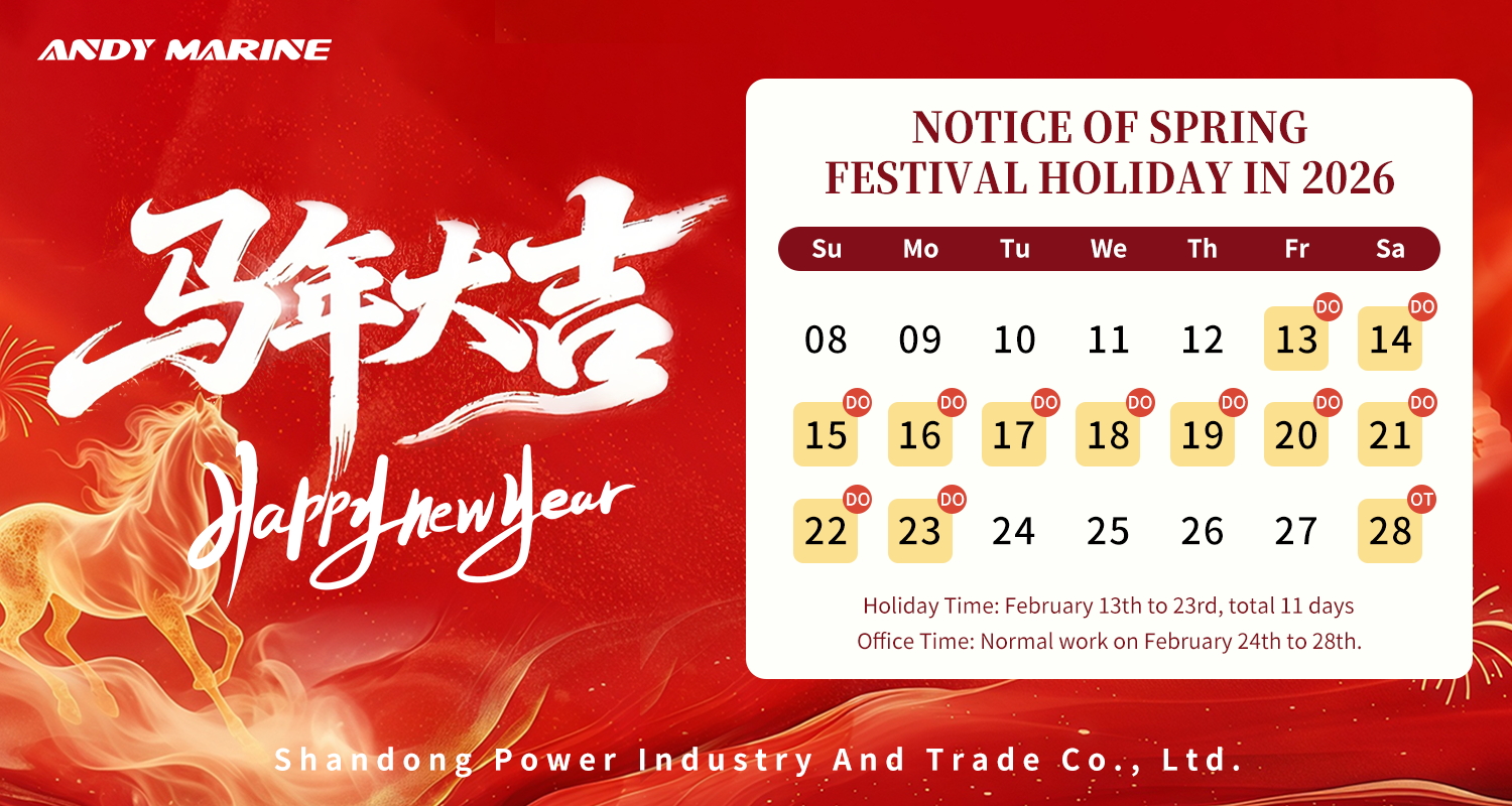 Ammattimaisena merilaitteiden ja tarvikkeiden toimittajana Andy Marine on sitoutunut tarjoamaan korkealaatuisia tuotteita ja luotettavia palveluita. Kevätjuhlan lähestyessä yrityksen eri osastojen työ on loppusuoralla, ja myös tilaus- ja toimitusasiat ennen uutta vuotta ovat loppuvaiheessa, jotta tuotteet toimitetaan asiakkaille oikea-aikaisesti.